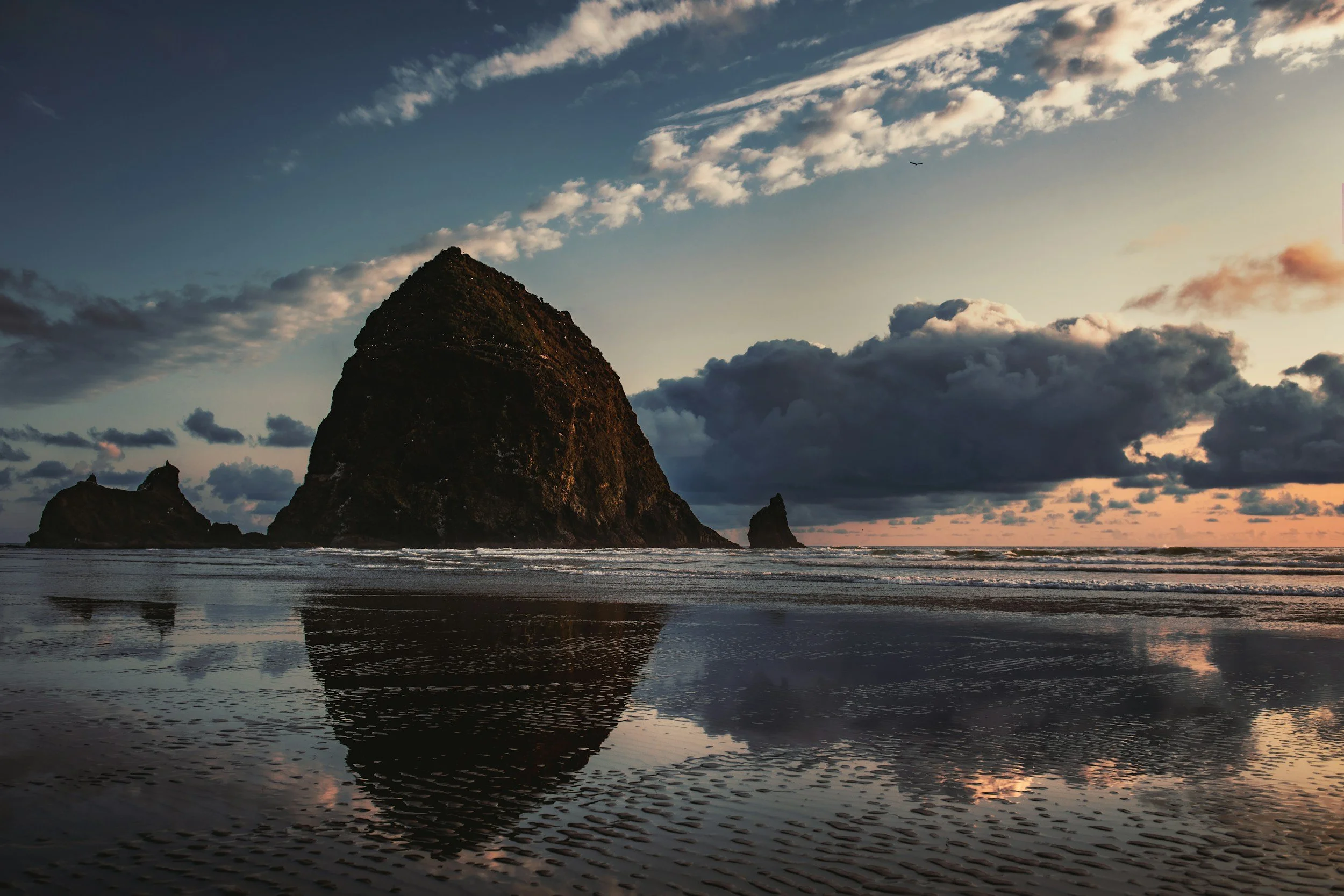 This is where Cannon Beach really stands out. If the tide is right, the wet sand reflects the sky and creates that soft, glowing look that feels almost unreal.